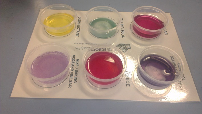 • Students use an indicator of cabbage water to identify acids and bases through colour changes.
